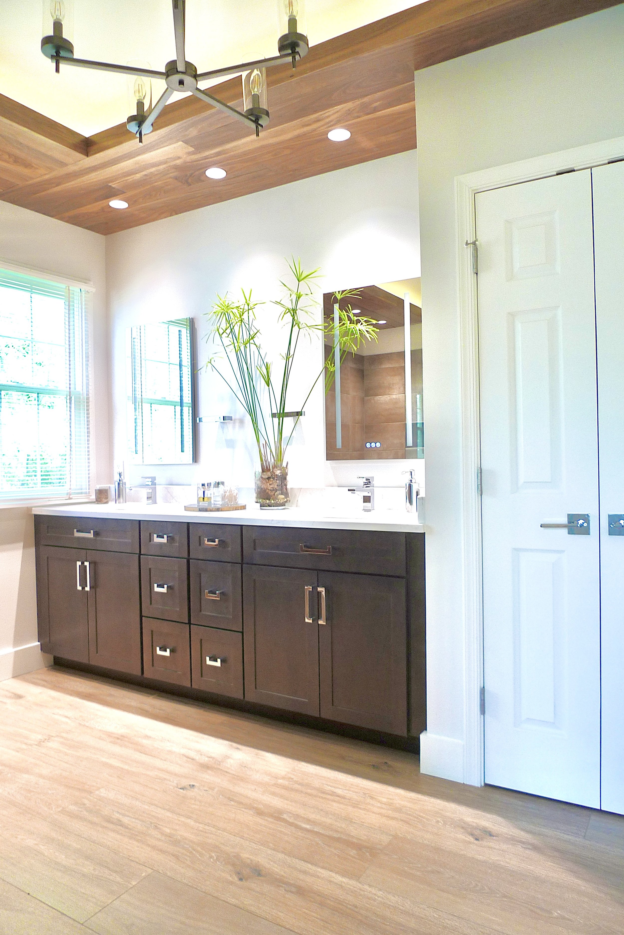 A master bathroom transformed for better efficiency and usability, featuring contemporary upgrades and a calming, spa-like feel.